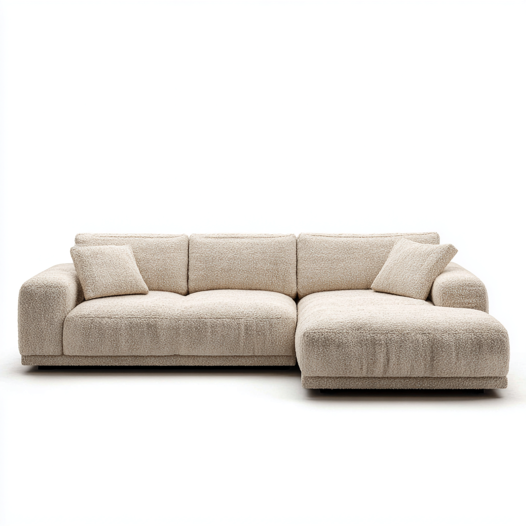 Este sofá rinconero destaca por su estilo moderno y su diseño de líneas envolventes, ofreciendo una experiencia de descanso amplia y agradable en la sala de estar. Su forma robusta y acolchado homogéneo proporcionan comodidad durante el uso diario.