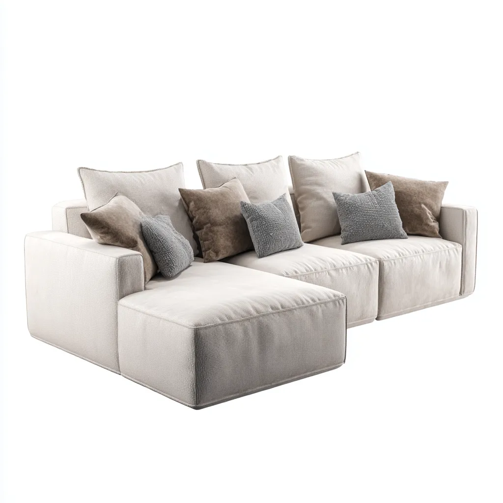 Este sofá rinconero de estilo moderno ofrece una superficie amplia y cómoda para el descanso diario. Su estructura robusta y líneas limpias lo convierten en una pieza versátil adecuada para salones contemporáneos.
