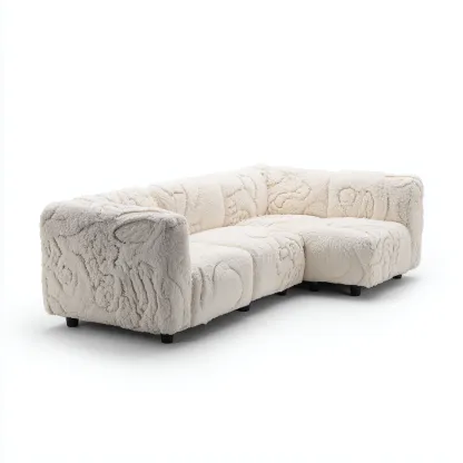 Este sofá rinconero destaca por su diseño contemporáneo y su superficie mullida, creando una atmósfera cálida y acogedora en la sala de estar. Su estructura amplia ofrece un espacio cómodo para el descanso diario.